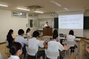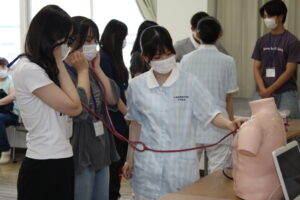 看護師を目指すみなさんには、とても興味のある内容だったようです。体験時の真剣な表情が印象的でした。