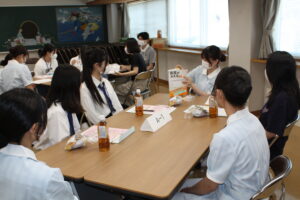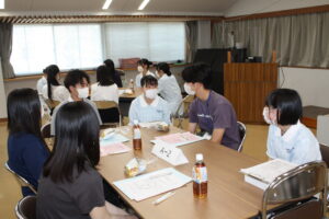 座談会では在校生とも打ち解けて話ができ、実際に使用している教科書を手にとったり、